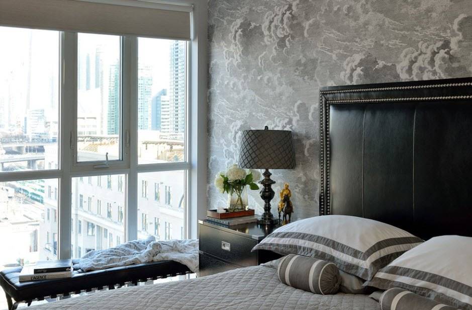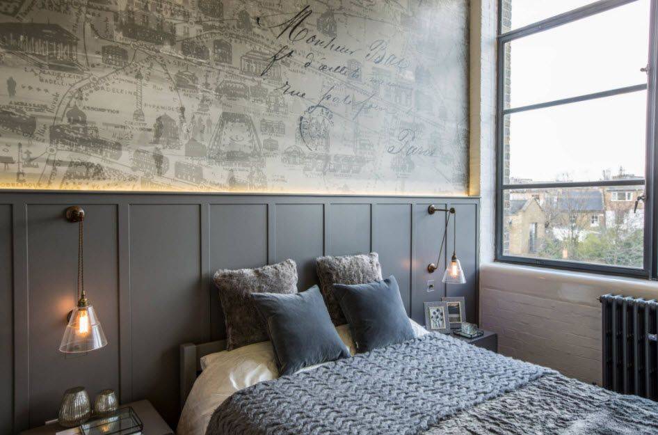 Спальню для мужчины обклеивают фактурными 3D обоями, рисунок выбирают графический.