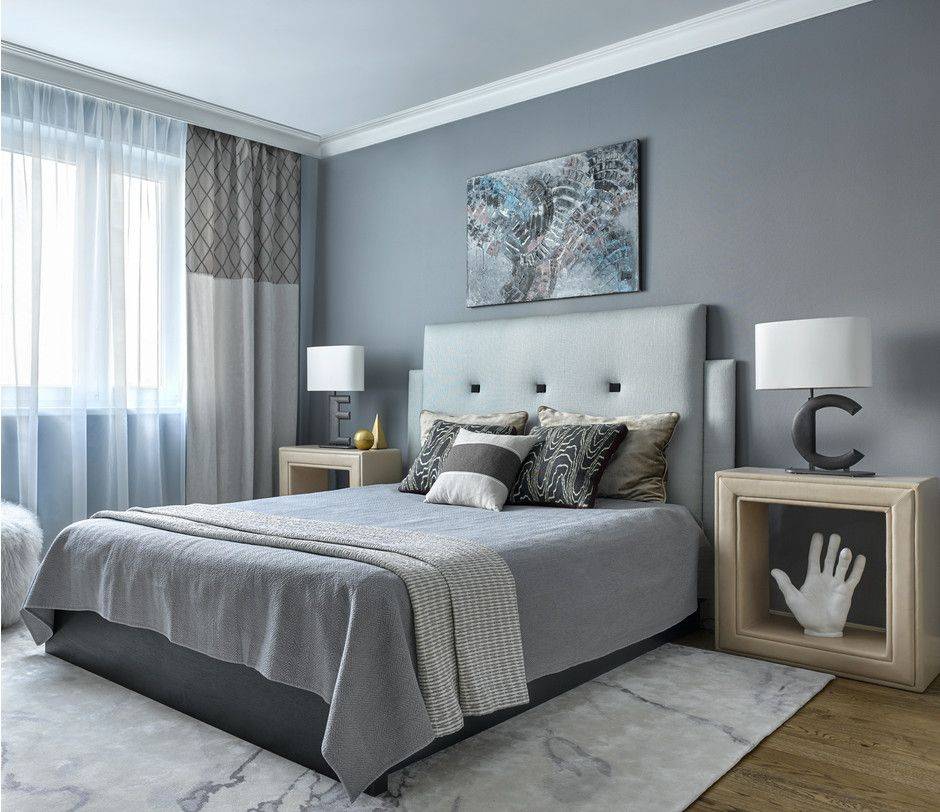 Если вы предпочитаете современную спальню, вам могут потребоваться более глубокие и драматичные оттенки серого. Сочетайте их с металлом и стеклом, чтобы создать индустриальный стиль.