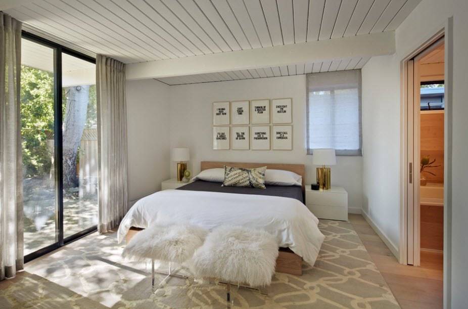 Еще один способ создать ощущение тепла в спальне — использовать слои мягких тканей из искусственного меха, от ковров у кровати до подушек и покрывал.