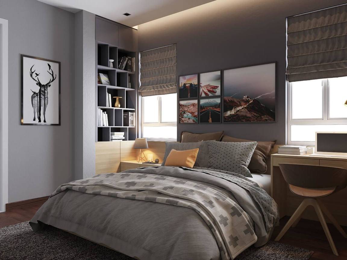 Сочетание популярное, в свою очередь, в дизайне комнат для мальчиков. Спальне оно способно добавить атмосферы свежести и ассоциаций с морским стилем. Стоит избегать открытых простых оттенков. К серому отлично подойдет мыльно-голубой, «выстиранная» бирюза и цвет старого денима И помните – никаких кричащих тонов.