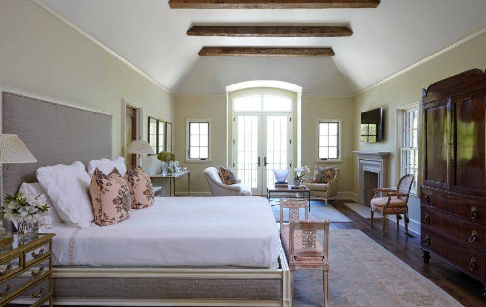 Светлая спальня в селом, сером и розовомИсточник optomtile.ru