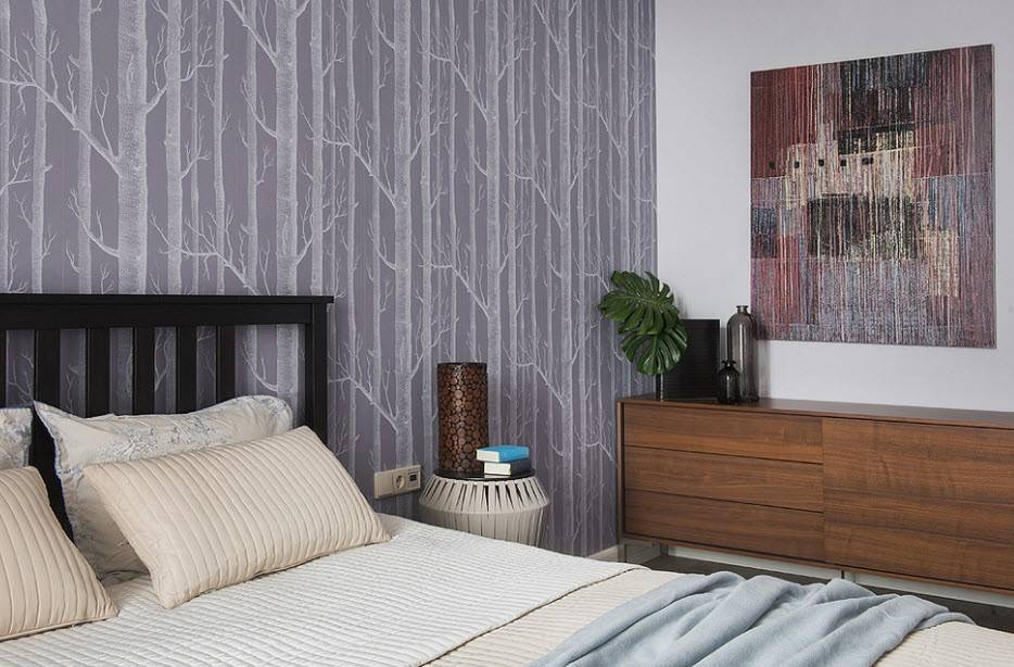 Не думайте, что, выбрав желаемую цветовую схему, вам придется исключить какие-либо тренды. Обои для серой спальни можно выбрать в любом ярком или, наоборот, спокойном цвете.