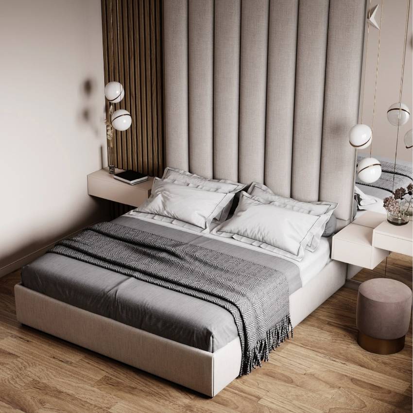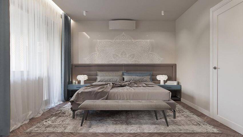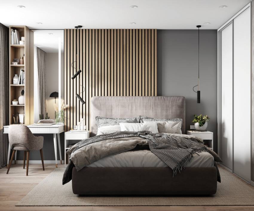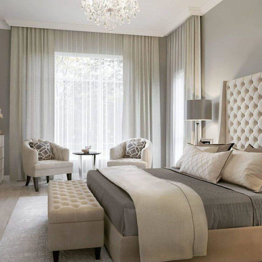 Сейчас в тренде отделка спален в серо-бежевых оттенках, которые получили название грейж (greige).