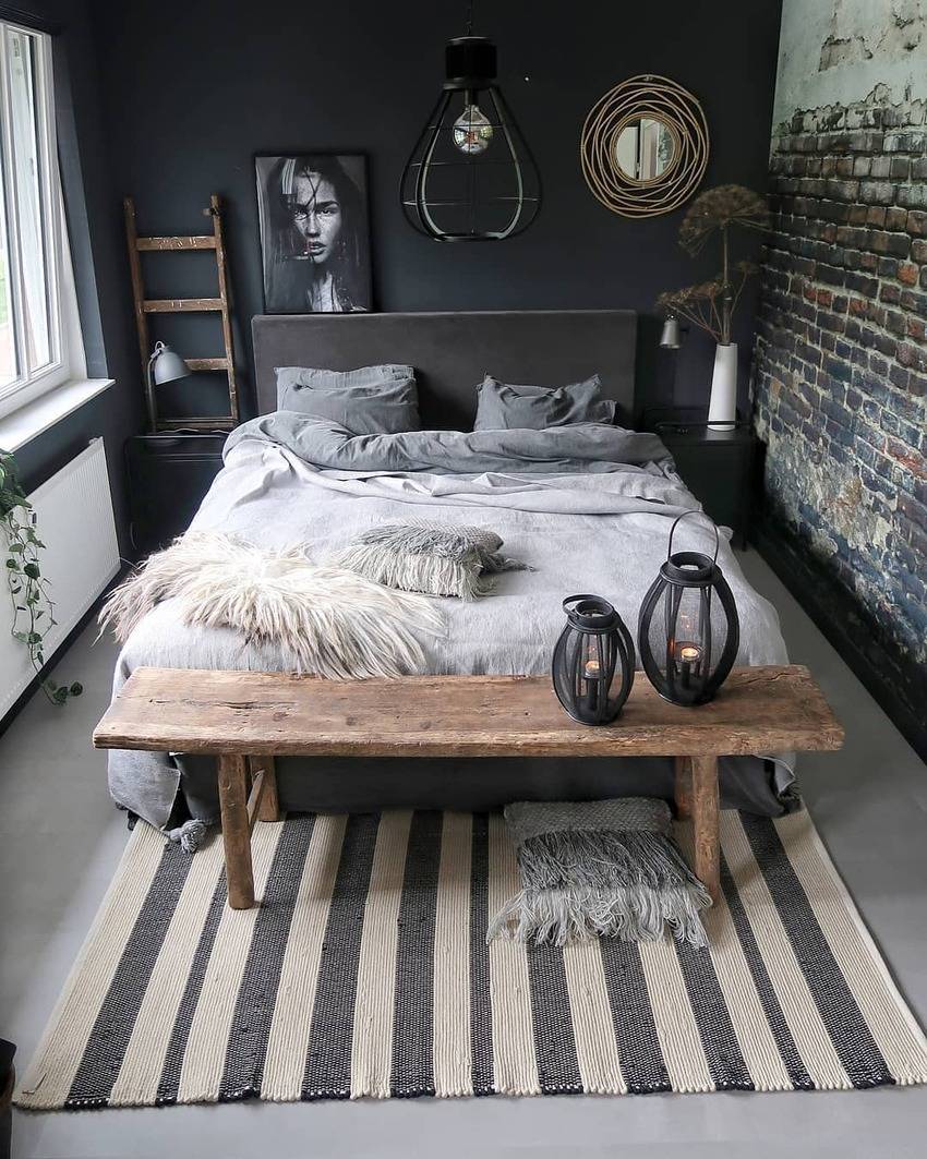 Эстетика индустриализма работает в основном в просторных помещениях. Однако в спальнях площадью 9 квадратных метров также возможно обустроить интерьер, соответствующий стилевым особенностям лофта.
