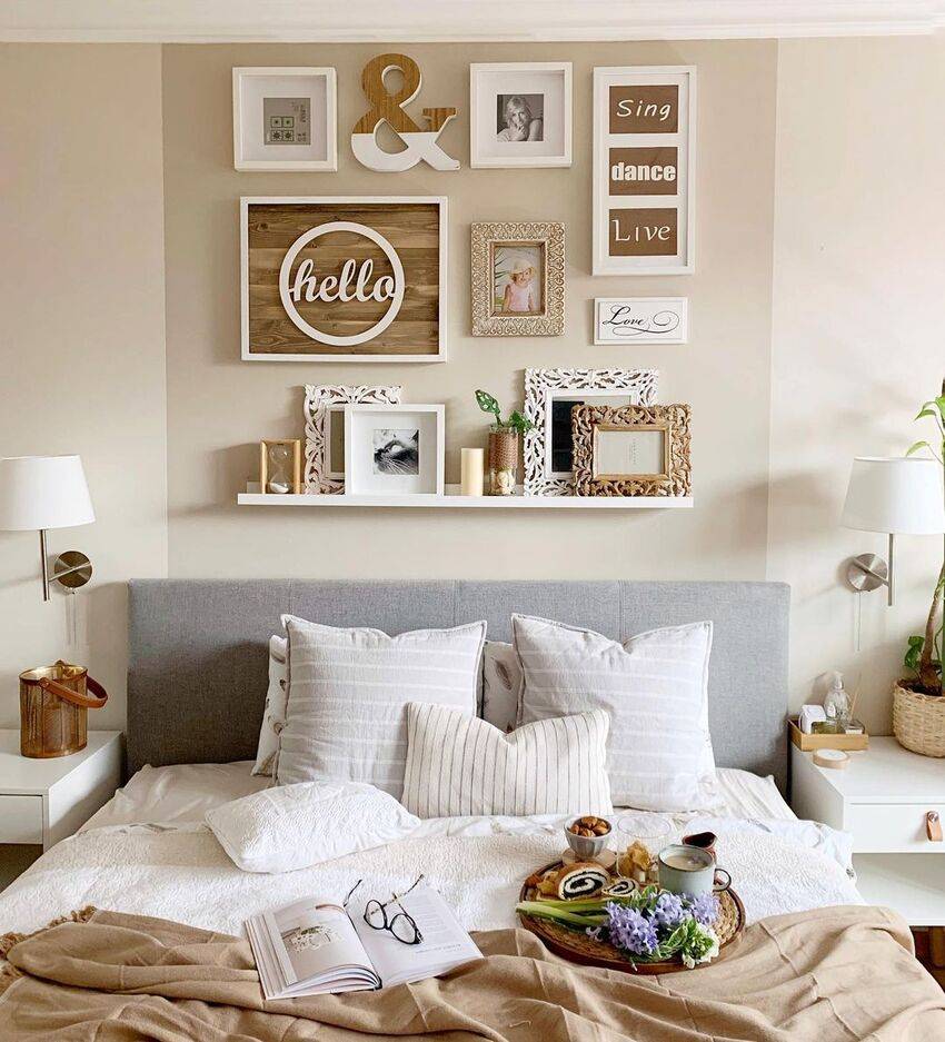 Фотографии на стене в спальнеИсточник uutvdome.ru