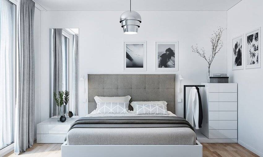 Этот стиль идеален для маленьких спален. Минимализм, как следует из названия стиля, делает упор на минимальном количестве мебели и декора.