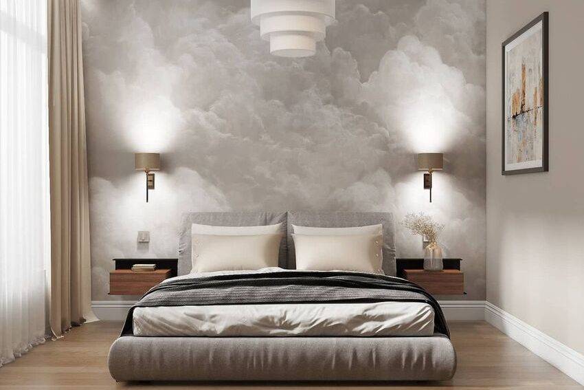При помощи фотообоев можно кардинально преобразить помещение за небольшие деньги. Главное не переусердствовать с декором: лучше отвести под фотообои акцентную стену, а остальное пространство выдержать в спокойной, монохромной палитре.