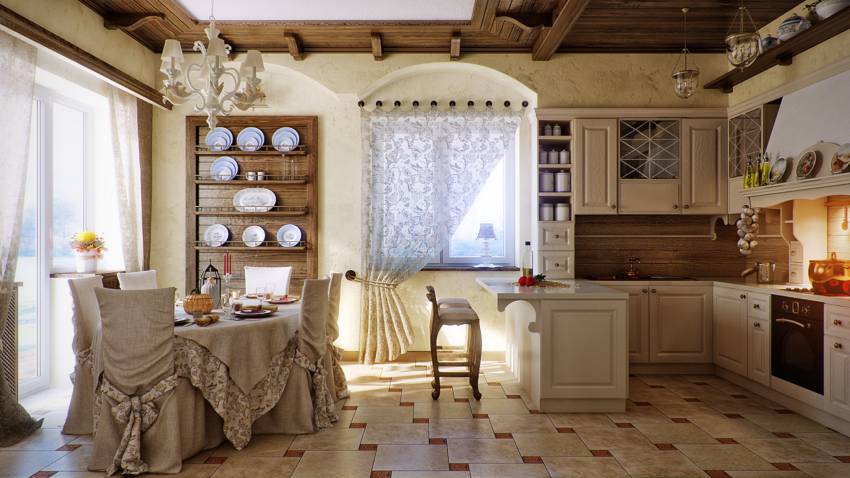 Внимание к декору: такое оформление предполагает множество мелких нюансов оформления – рисунков на посуде, статуэток, рукодельных мелочей, и все они играют свою роль в интерьере