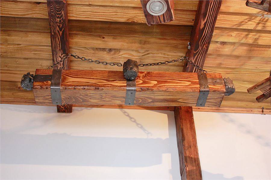 В интерьере кантри обычно НЕ используют точечное потолочное освещение, а применяют кованые или деревянные люстры.