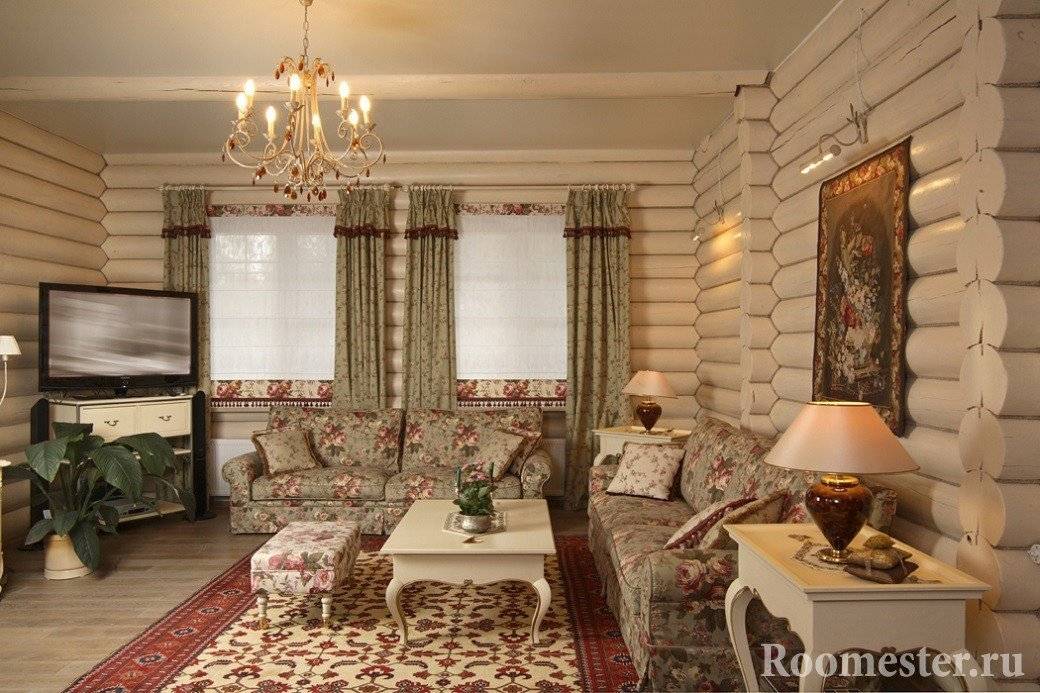 Русский кантри. Для русского кантри свойственно применение необработанной древесины — слегка состаренные бревна, минимум обработки. Всё грубое, простота напоказ.