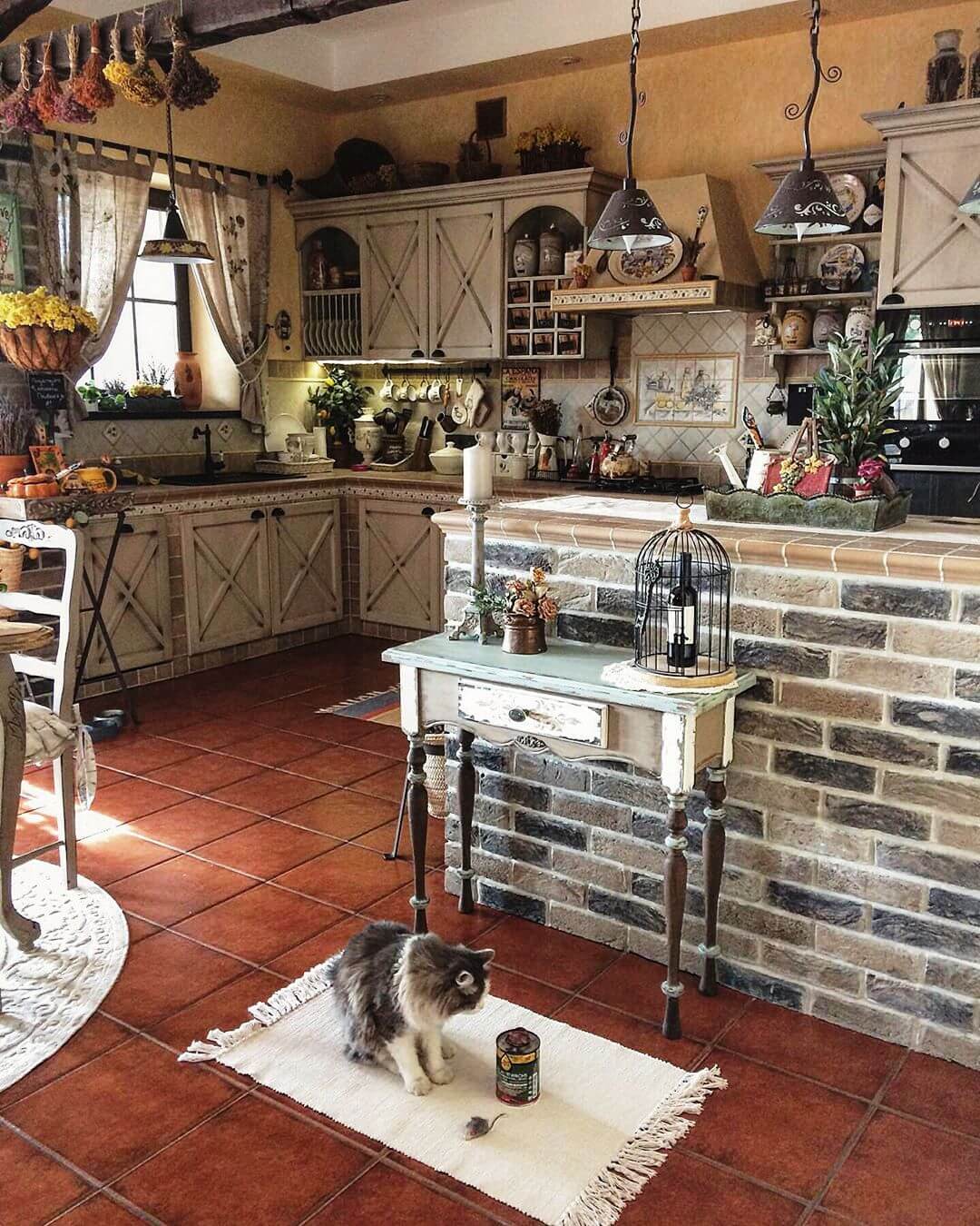 Каменный пол, деккор стен под камень — признаки итальянского кантри