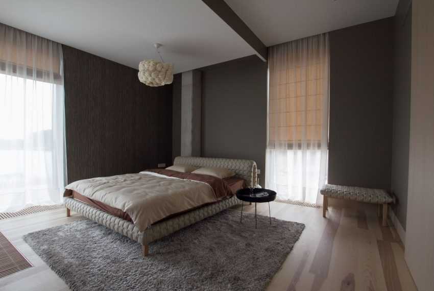 Кровати-подиумы, кровати, выполненные в строгих геометрических формах (круглые или прямоугольные) или японские футоны будут отлично смотреться в интерьере минималистической спальни.