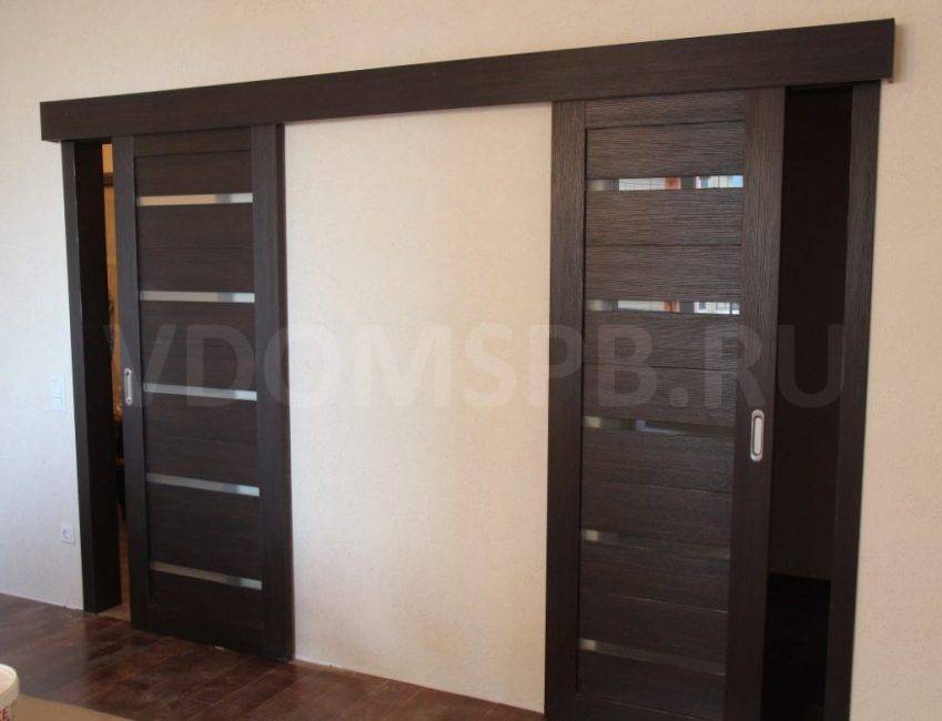 Раздвижные двери с покрытием из экошпона в цвете венге