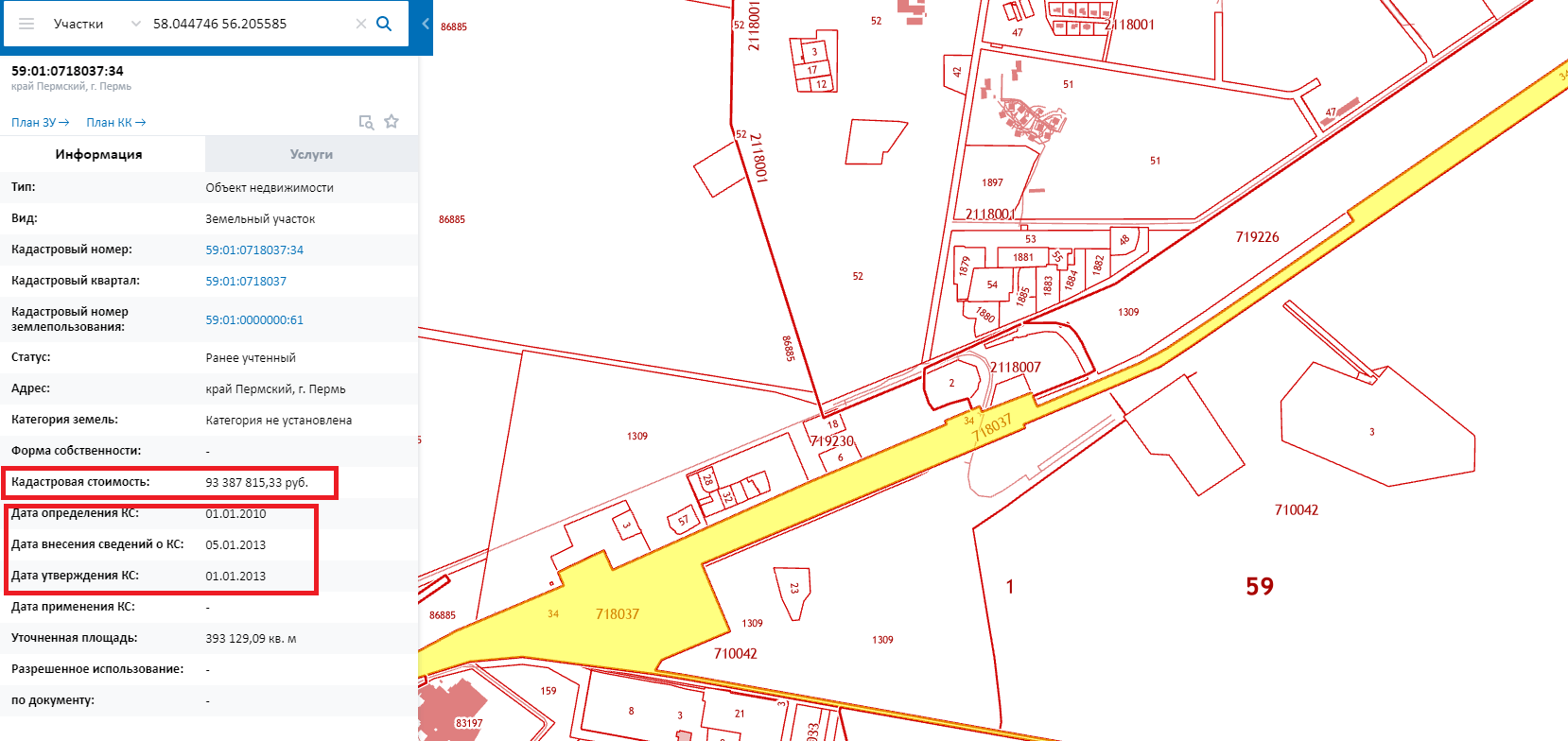 На Публичной кадастровой карте можно узнать показатель стоимости, дату последней государственной оценки объекта.