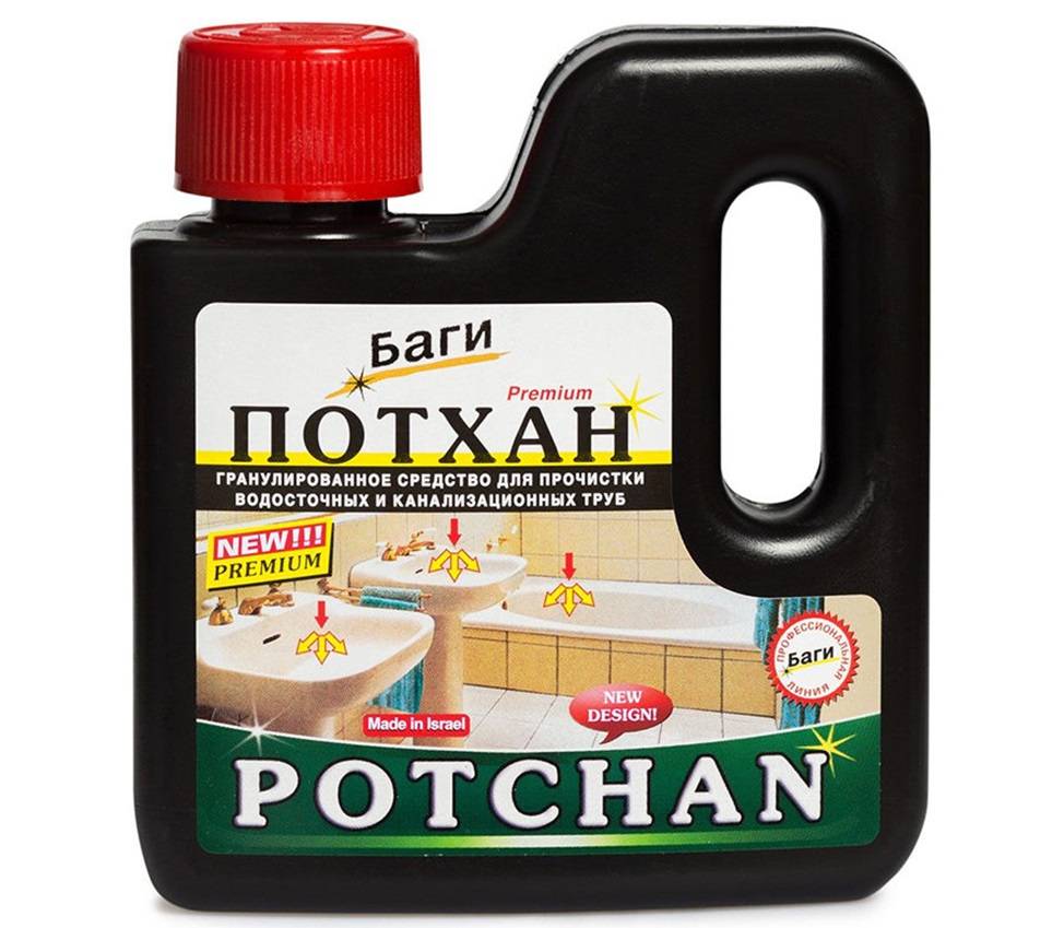При этом пробивается грязевая пробка, смываются со стенок жировые и масляные наросты, растворяются волосы и нитки, даже коллагеновые волокна, удаляются известковые отложения. Но, как и в случае с препаратом «Потхан», необходимо строго соблюдать требования техники безопасности. Не забываем о вентиляции или сквозняке.
