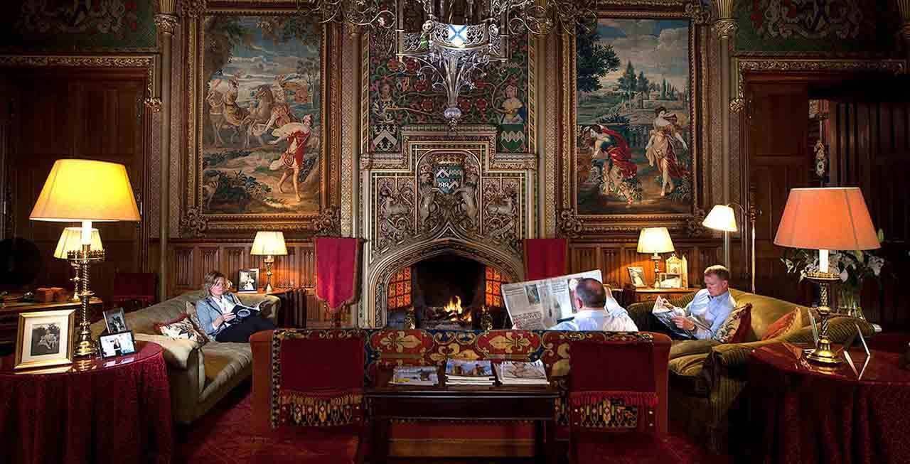 Ещё одна знаковая работа Пьюджина – . Главная гостиная была богато оформлена и являлась центральной комнатой всего замка. Стиль декорирования был назван геральдическим, так как в нём помимо большого количества готических элементов присутствует, в большом количестве, геральдическая символика, связанная с историей семейства владельцев здания. Камин – важнейший координационный центр комнаты. Внутренняя форма портала имеет стрельчатую форму, над ней размещён герб семьи с орнаментами, а ещё выше генеалогическое древо рода. Вся эта большая композиция является единым целым элементом интерьера.
