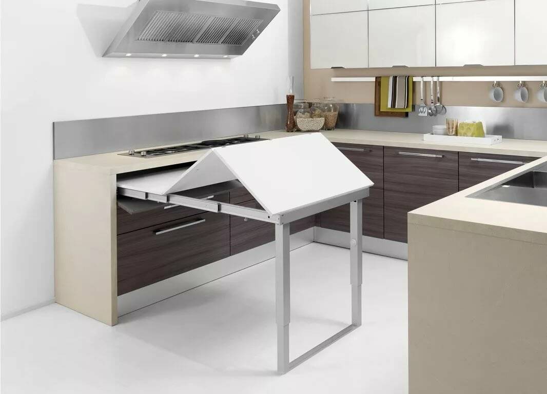 При покупке конструкции следует исходить из свободного пространства помещения. Для больших кухонь можно взять монолитные столы, а вот для небольших – лучше отдать предпочтение трансформерам