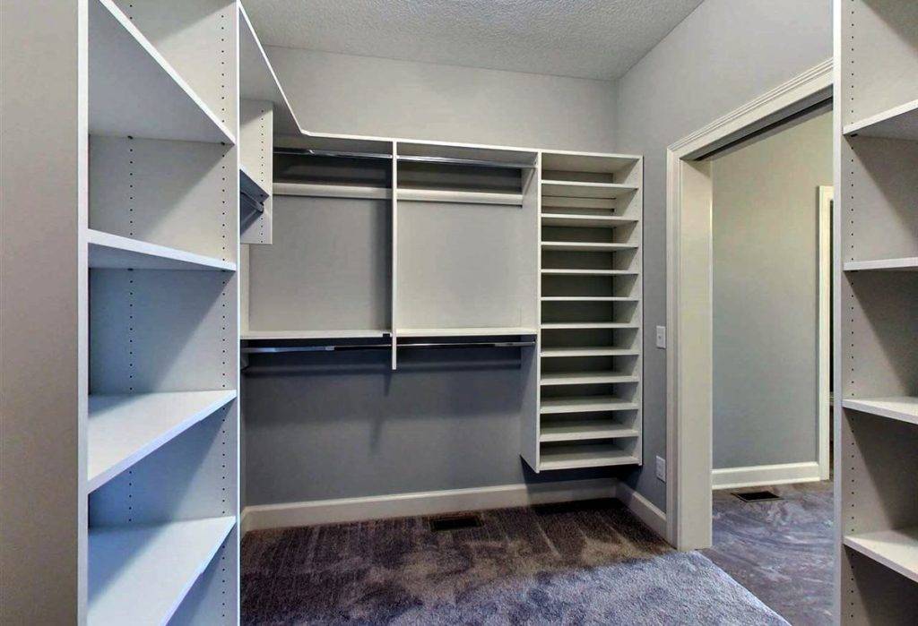- Большой выбор оборудования для гардеробной комнаты, что позволяет разместить полки и вешалки различными способами.