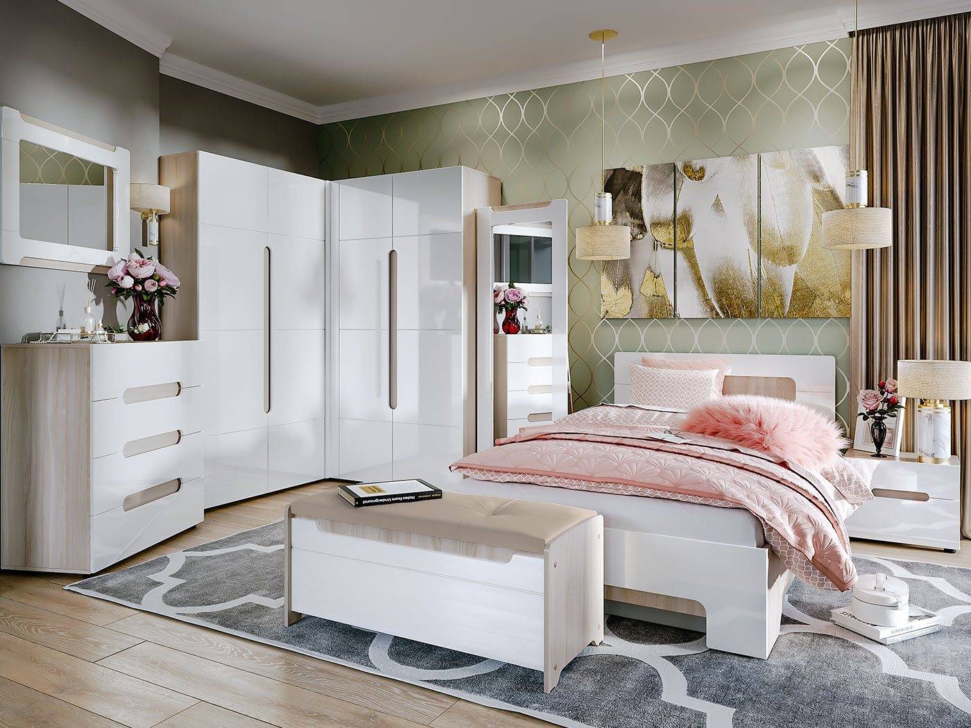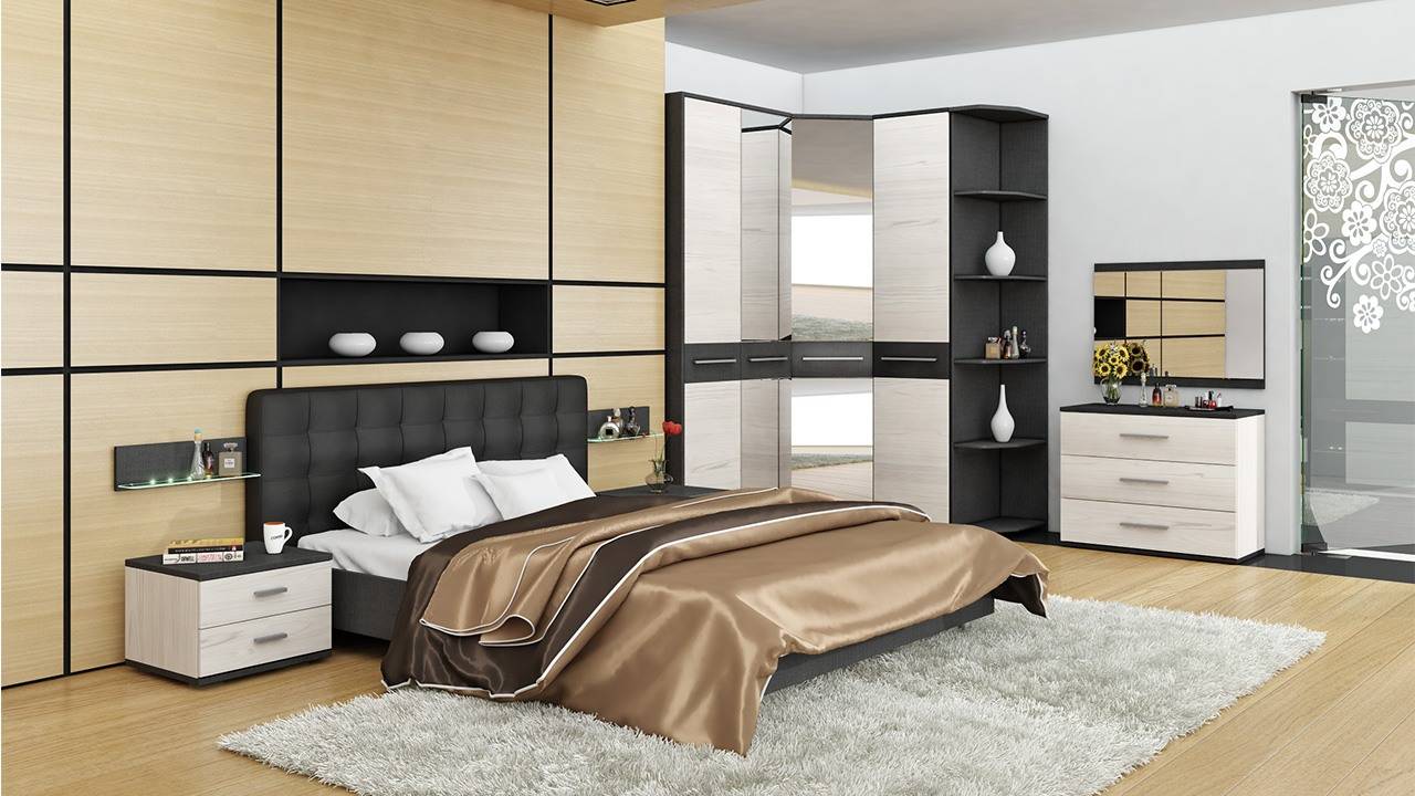 Прямые и угловые стенки в спальню: фото интерьеров в современных и классических стилях
