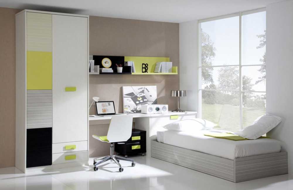 Столешница и стул в идеале имеют регулировку по росту, т.к. их хозяева будут быстро расти. Длина кровати тоже рассчитывается с запасом: если в будущем не будет возможности её расширить, лучше не брать встраиваемый тип, а ограничиться отдельно стоящей кроватью и стенкой для работы и хранения.