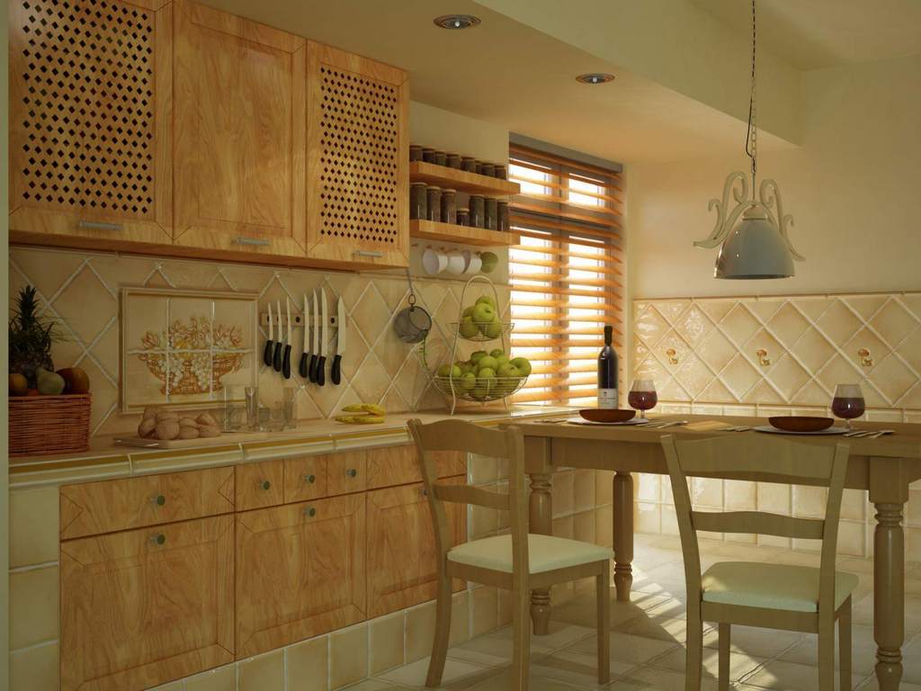 Музыка кантри напоминает фермерское ранчо, поэтому здесь выбирают камень, дерево или имитацию натуральных материалов. Прованский стиль наоборот предполагает использование светлых тонов и мелких элементов. Здесь подойдет мозаика, светлая плитка, панели МДФ или стекло.