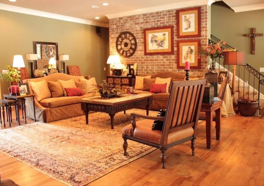 Прозрачный тюль на окнах, ковер из натуральных материалов под ногами, картина на стене или икебана из искусственных цветов на столике придадут комнате южный шарм и колорит.