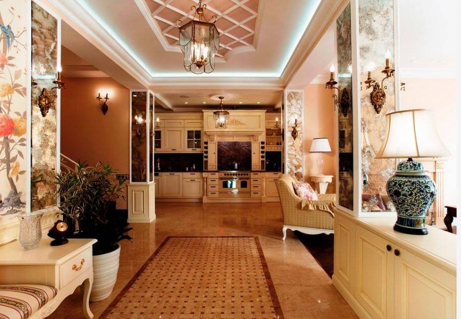 - большим количеством света. В таком интерьере приветствуются панорамные окна, большое количество бра и торшеров.