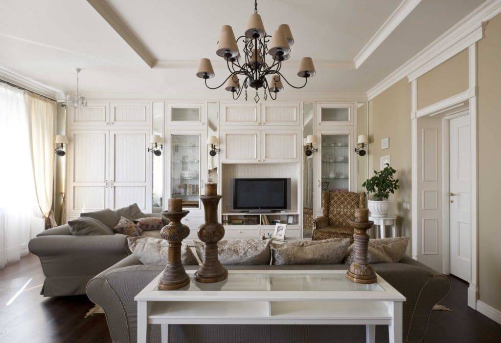 Несомненно, гостиная – это неким образом визитная карточка, ведь именно здесь мы принимаем наших гостей. Комната должна создавать уют и комфорт, при этом комбинироваться с тяжёлой, немного готической мебелью, оформленной с помощью больших подушек. Чтобы достичь истинной атмосферы прованса, в гостиной должны находиться старые книги и подсвечники, а также деревянные элементы под старину, которые смогут предать помещению особенную атмосферу.