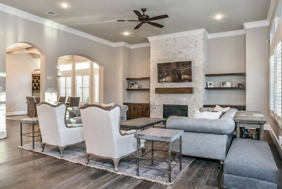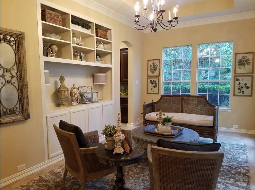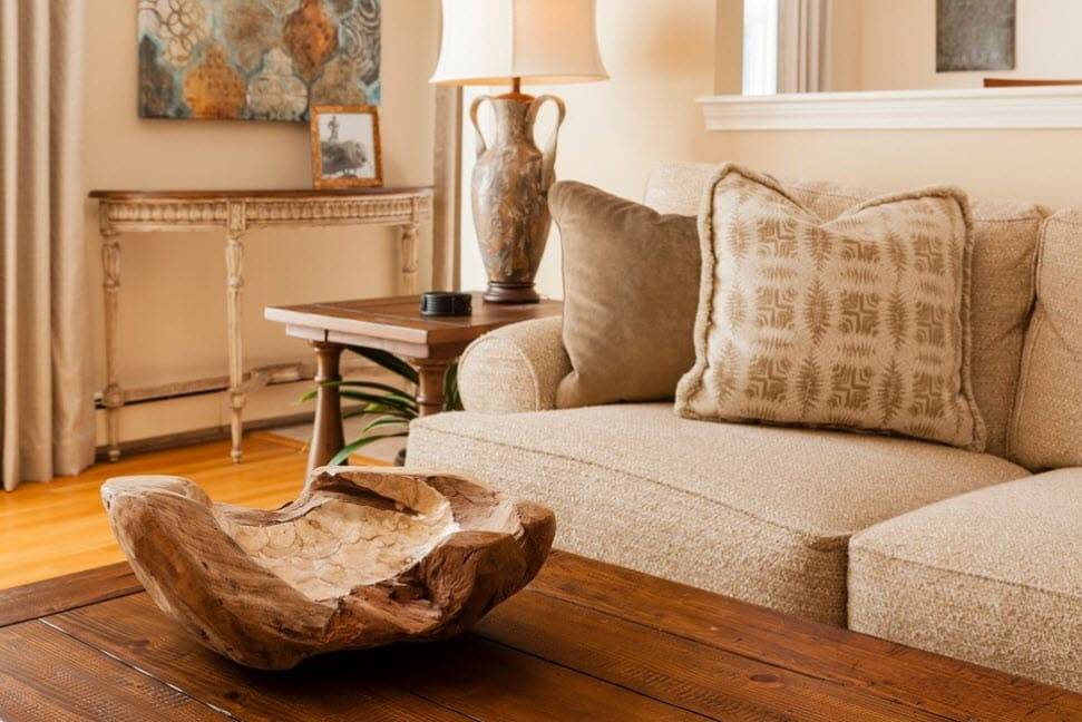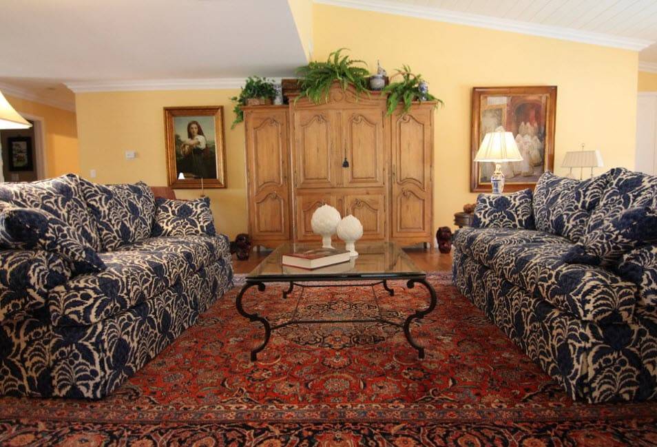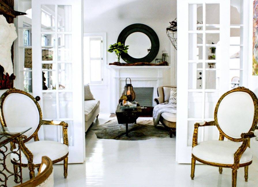 В основном мебель, которая используется в гостиной – это искусно отреставрированные или состаренные предметы, которые можно найти на деревенских распродажах или в кладовых комнатах чердака.