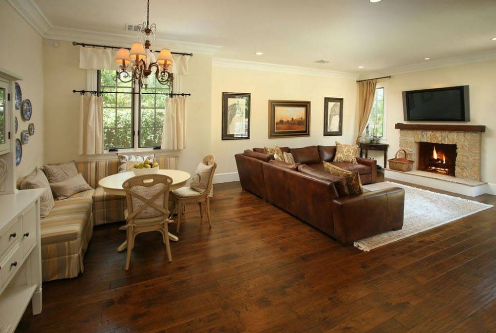 - Пол деревянный, лучше всего, если он будет в более тёмных оттенках.