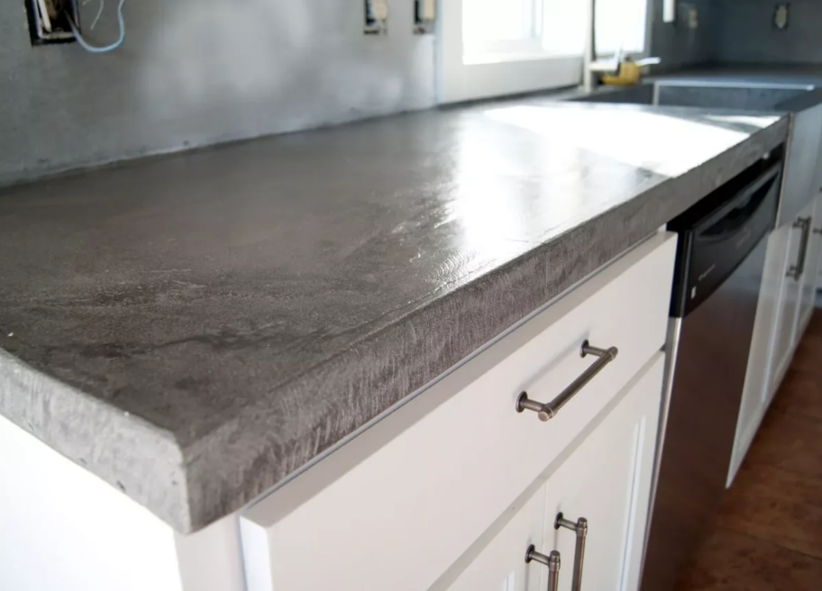 Нужно учитывать, что толщина столешницы из бетона в среднем составляет 4 сантиметра. Конечно, можно сделать и больше.