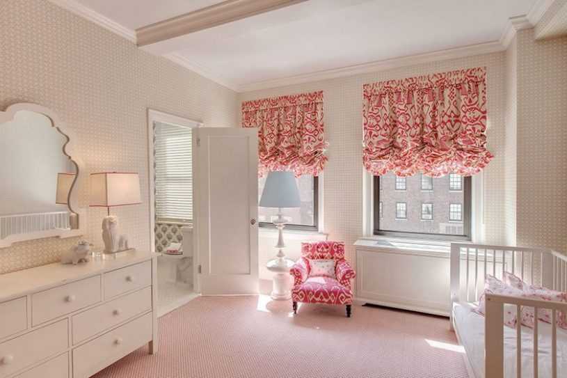 - Занавески в детскую комнату для девочки можно сшить из розовых тканей.