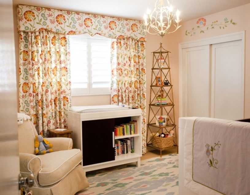 Для новорожденных выбирайте нежные шторы не только привычного розового, но и прочих пастельных оттенков. По контуру они могут быть обшиты яркой лентой.