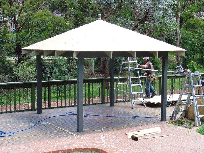 Монтаж крыши беседки из дерева