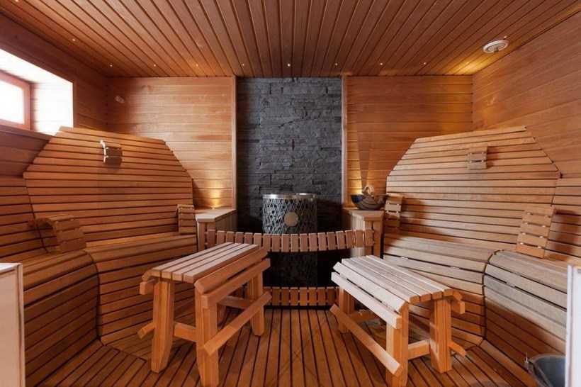 Для облицовки помещений с высокой температурой не рекомендуют применять хвойные породы, т. к. они выделяют смолистые вещества, вредные для дыхания. Для стен, пола, потолка, лавок используют лиственницу, березу, пихту, осину, кедр.