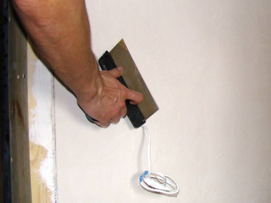 Главное правила удачного нанесения данного материал – однослойное нанесение. Для предупреждения падения материала под давлением собственной тяжести на голову рабочему, нужно сделать укрепление при помощи армирования. После нанесение состава, его необходимо равномерно распределить по стенам и выровнять. Схватывание штукатурки начинается по прошествии 40 минут. Использую шпатель трапециевидной формы, уберите лишний материал с поверхности.
