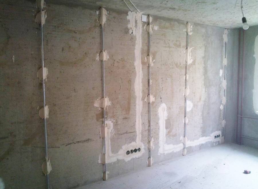 Процесс подготовки стен перед нанесением гипсовой штукатурки Кнауф