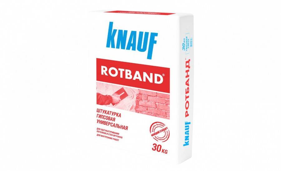 Штукатурка Кнауф Ротбанд – наиболее востребованная гипсовая смесь среди мастеров-отделочников. Ее наносят на потолки и стены, на утеплитель (например, пенопласт). В составе присутствует гипсовый камень, еще список компонентов дополняют пластификаторы и добавки для эластичности.