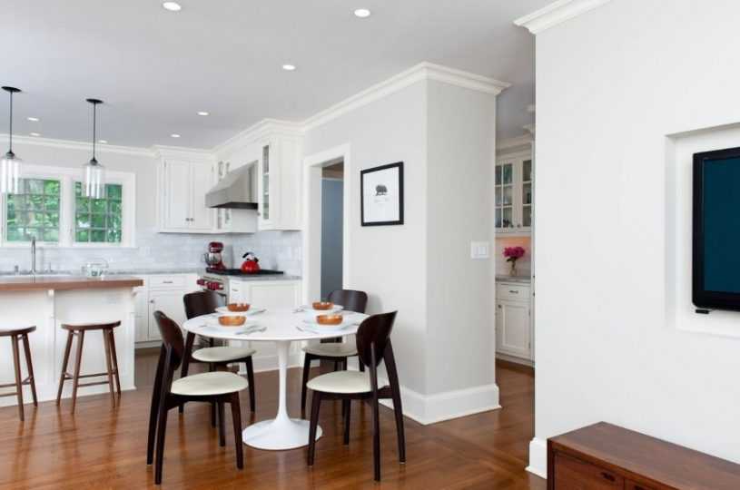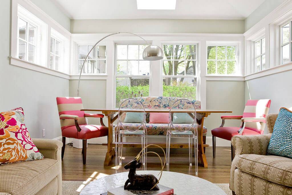Одним из удачных приемов – это создание обеденной, рабочей или зоны отдыха, где стулья расположены вокруг стола.