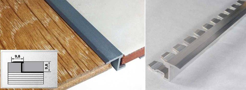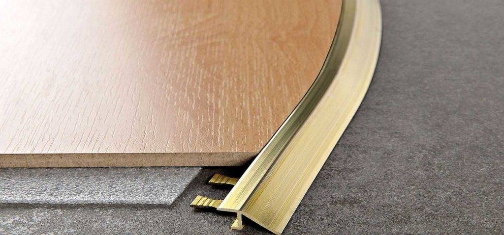 Такой профиль подбирают в цвет покрытия или выбирают нейтральный тон, который будет гармонировать и с ламинатом, и с плиткой.