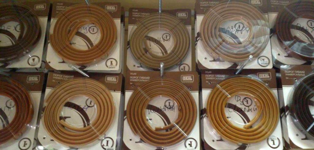 Это почти такой же пластиковый порожек, но в его состав добавлена резина. Благодаря этому он может гнуться и принимать любую форму. Его также называют криволинейным профилем