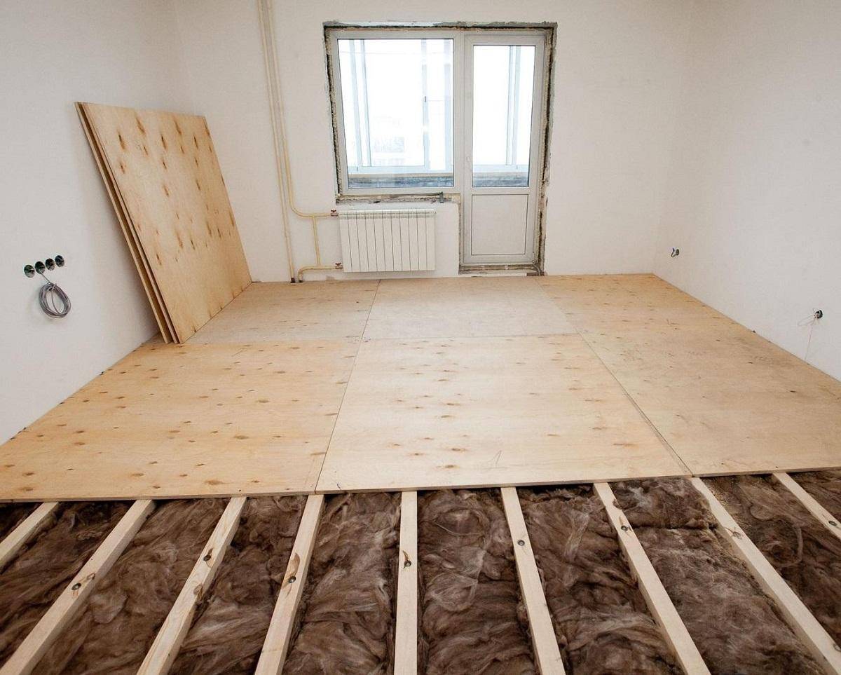 - Возведение пола на лагах с укладкой между ними звукоизоляционного слоя.