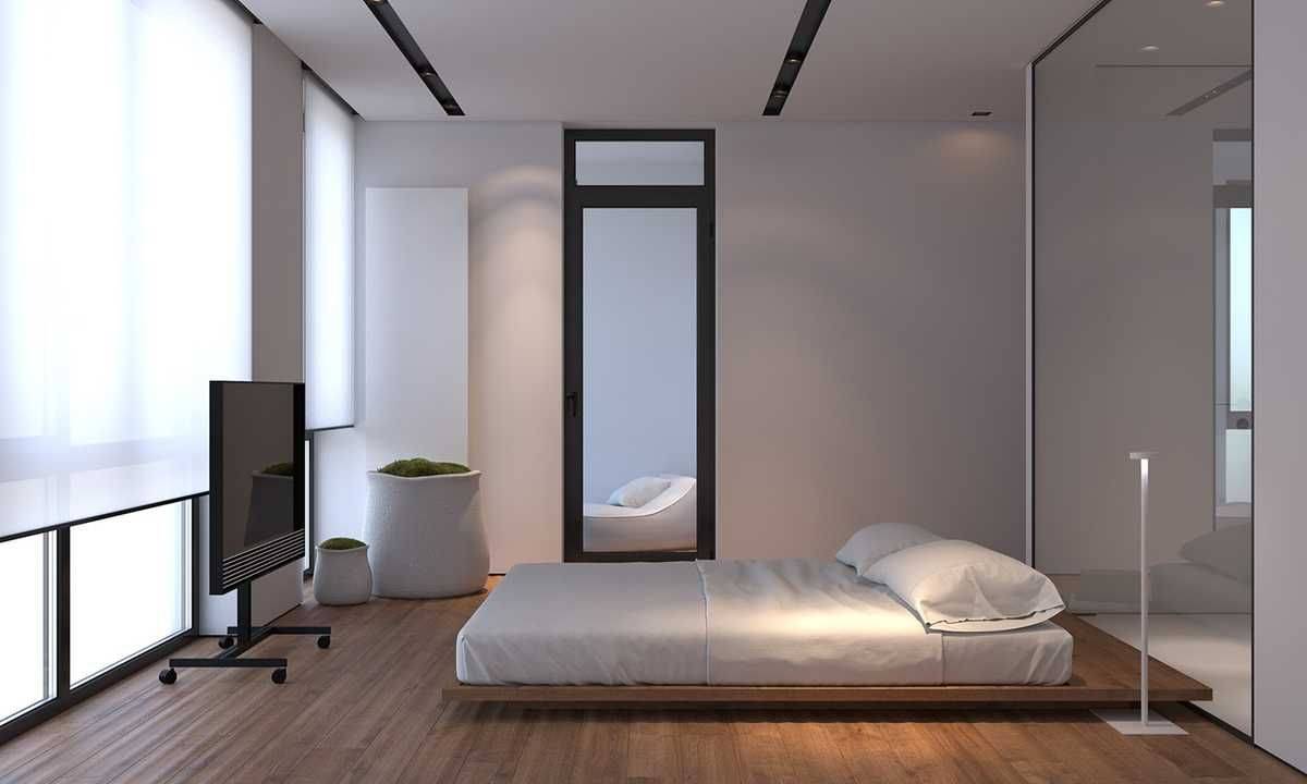 В отличие от гостиной, внимание в спальне не сосредоточено на ТВ. Это место спокойного отдыха