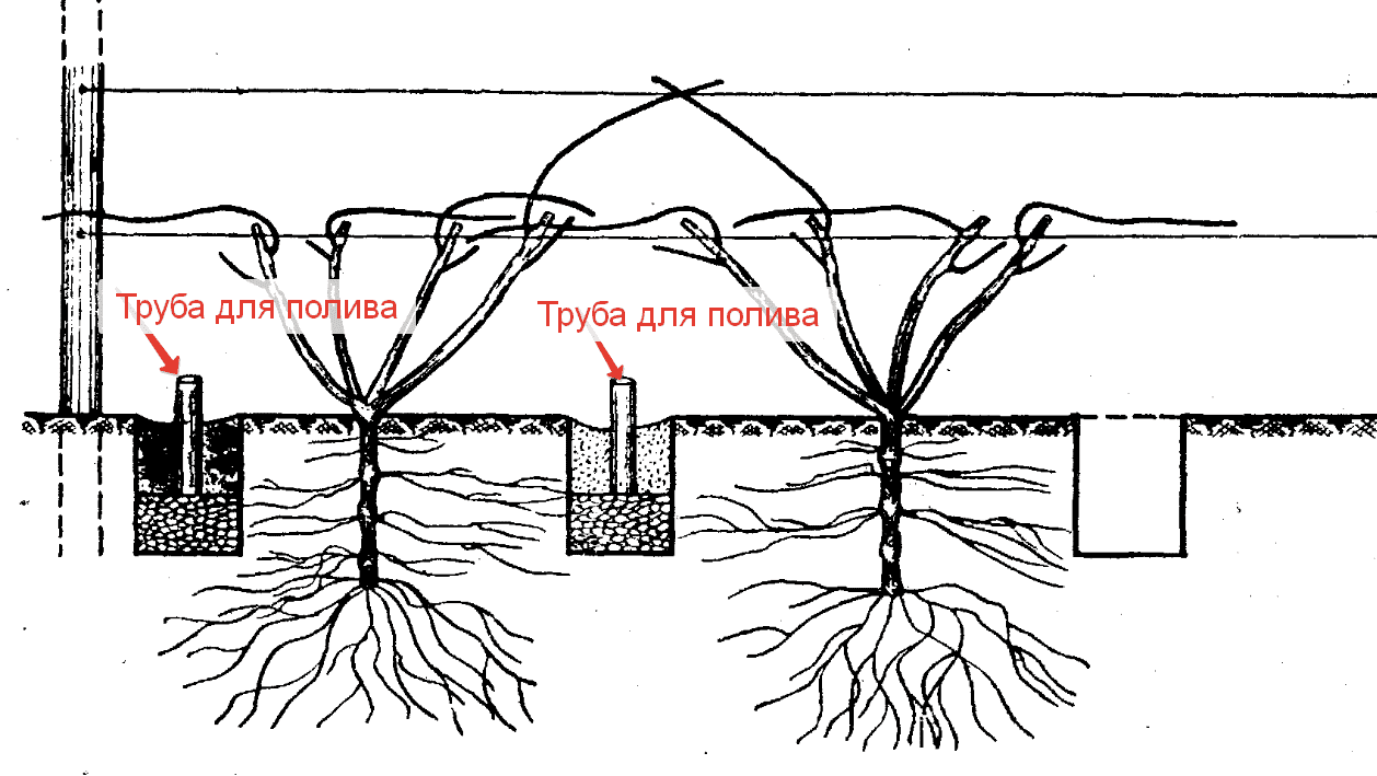 схема посадки винограда в теплице следующая: для посадки выкапывается глубокая и широкая яма (не менее 35-40 см)