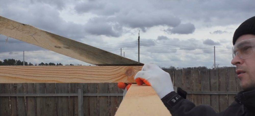 Шаг 6. Приступаем к сбору крыши. Напиливаем брус в необходимом количестве на отрезки, равные длине ската.