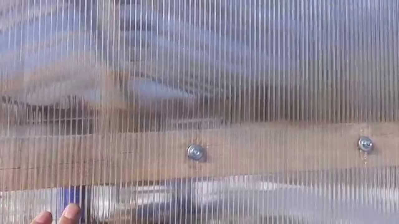 Поликарбонат имеет свойство сжиматься и расширяться при перепадах температуры, поэтому отверстия под крепеж должны быть немного больше диаметра шурупов или саморезов. Между шляпкой шурупа и листом нужно подкладывать резиновую прокладку. Если вы делаете каркас из дерева, то между деревом и поликарбонатом в месте крепления также нужно положить резиновую прокладку. Между собой листы скрепляются с помощью соединительных планок.