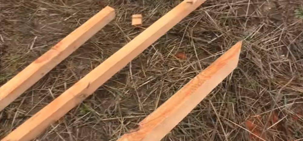 Шаг 7. Между опорами будущей теплицы закрепляем горизонтальные стяжки, которые также можно подпереть откосами.