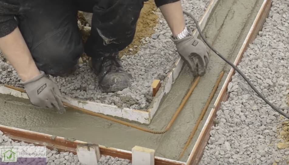 - нанесение фундамента с точным расположением вбитых в грунт штырей и места их прикрепления к каркасу при помощи сварки;