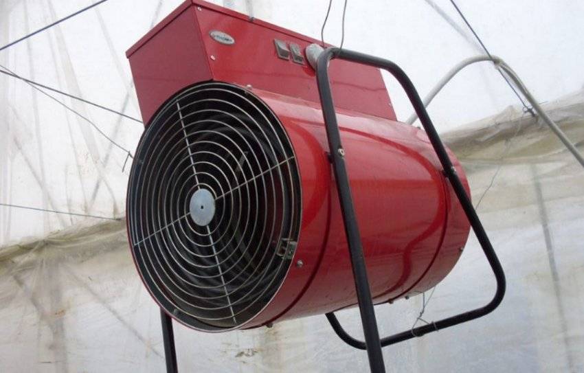 Представляет собой установку электрических тепловентиляторов, которые состоят из нагревательного элемента в виде керамической пластины или спирали, а также расположенных поблизости вентиляторов. За счёт этого воздух циркулирует внутри теплицы и быстро нагревается. Такой обогрев является одним из самых экономных и простых в эксплуатации. При необходимости можно обеспечить подачу воздуха на нужном уровне, что позволит экономить электроэнергию.