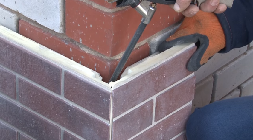 монтаж клинкерных панелей посредством клея. Но чаще всего, поверхность имеет